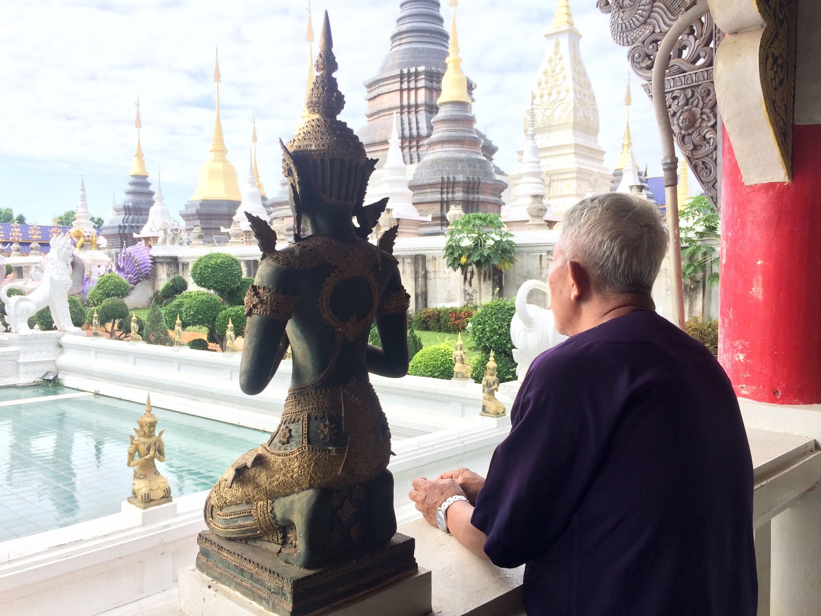 วันนี้พาพ่อไปเที่ยววัดบ้านเด่นสะหลีศรีเมืองแกนที่น้องชายเคยพาไปเมื่อเดือนก่อน วัดนี้สร้างขึ้นอย่างประณีตวิจิตรบรรจงแต่ซ่อนตัวอยู่เงียบๆ ในเมืองเล็กๆ ใน อ.แม่แตง ความงดงามของเจดีย์ โบสถ์วิหาร ศาลา... ทุกอาคารสถานที่ของวัดนี้ทำให้ฉันกับพ่อต่างเห็นตรงกันว่า "สวยราวกับสรวงสวรรค์"